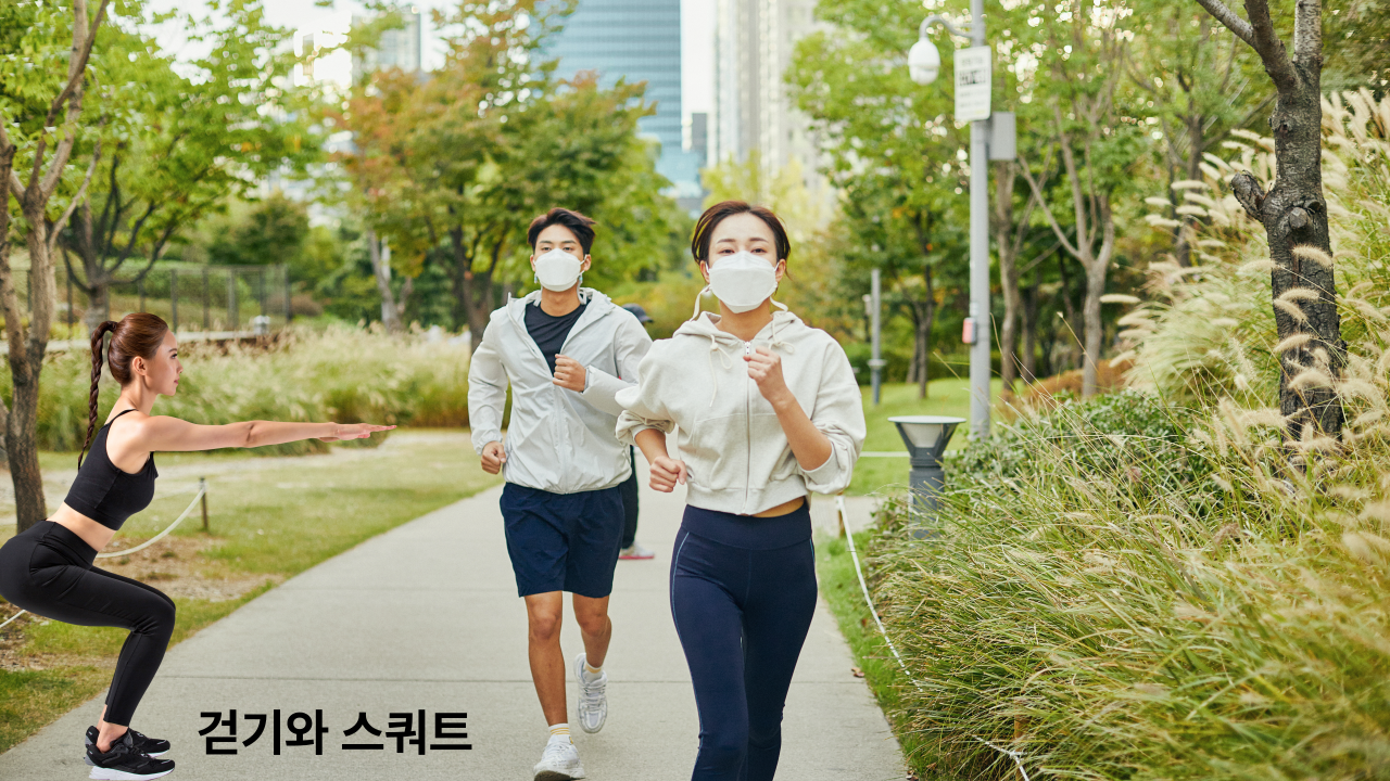 - 걷기(유산소) + 스쿼트(근력)