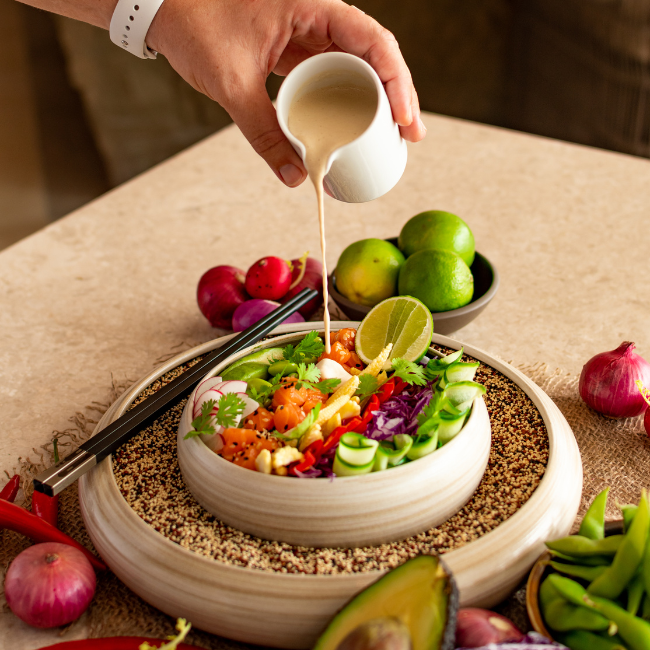 청국장 드레싱: 청국장가루를 올리브유, 식초, 꿀과 섞어서 샐러드 드레싱으로 활용할 수 있습니다. 이 드레싱은 샐러드에 고소하고 풍부한 맛을 더해줍니다.