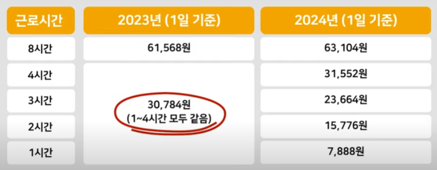 단시간 근로자의 경우 실업급여 하한액이 근로 시간에 따라 차등 적용됩니다. 기존에는 하루 한 시간에서 4시간을 일해도 모두 4시간 근무한 것으로 간주했지만, 2024년부터는 실제 근무 시간이 반영되어 실업급여 하한액이 줄어듭니다. 단시간 근로자는 하루 한 시간에서 4시간 등 근로 시간이 짧은 자를 말합니다.